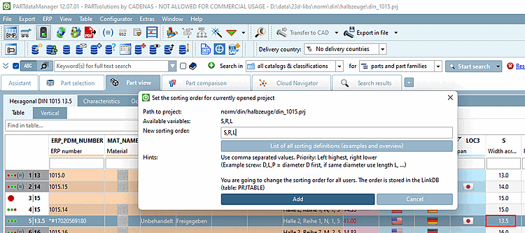 If the PARTdataManager for example, using Add data record to link database (variant) [Add dataset to link database (variant)] Variants are added to the table, correct sorting is not always guaranteed.