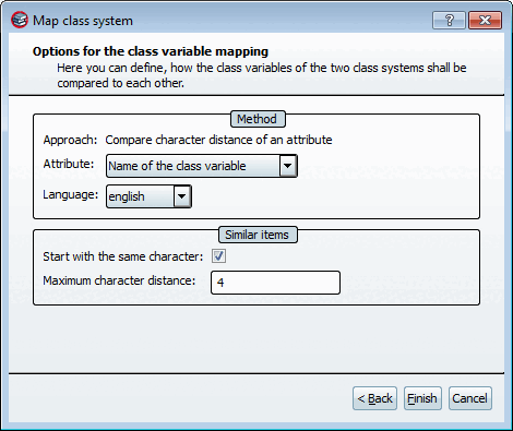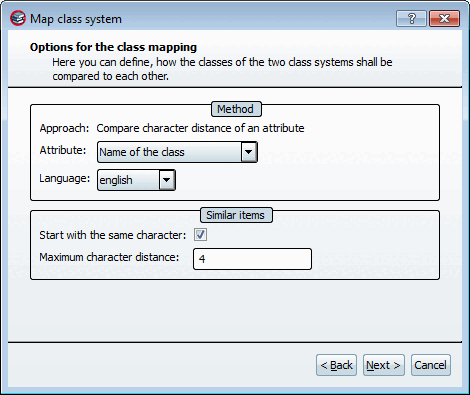 Here you can define, how the classes of the two class systems shall be compared to each other.