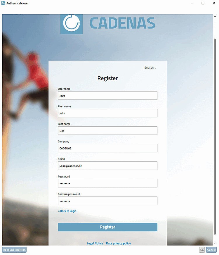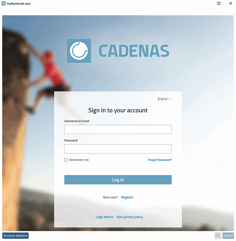 -> The Authenticate user dialog page opens and displays the login dialog.