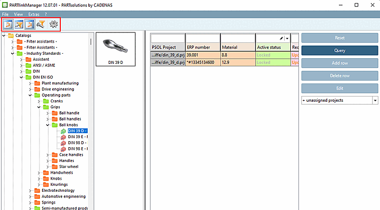 Filter tree using the LinkDB entries [Filter tree based on LinkDB entries] (toolbar) or display tree filtered [Display filtered tree] (menu): Only parts and folders that contain links in the LinkDB are displayed. The folders are displayed in yellow.