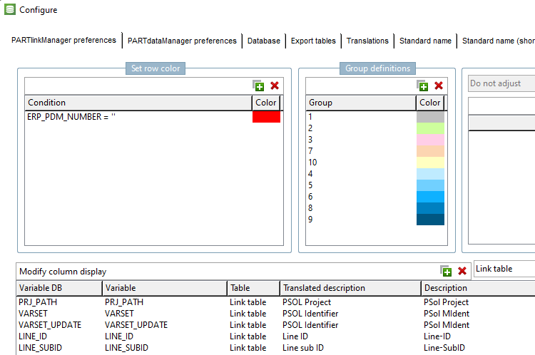 Green for parts: These are linked in the LinkDB. Red for parts: These are not linked in the LinkDB.