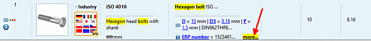The result list of course includes hexagon bolts, but also a hit "head cap bolt".