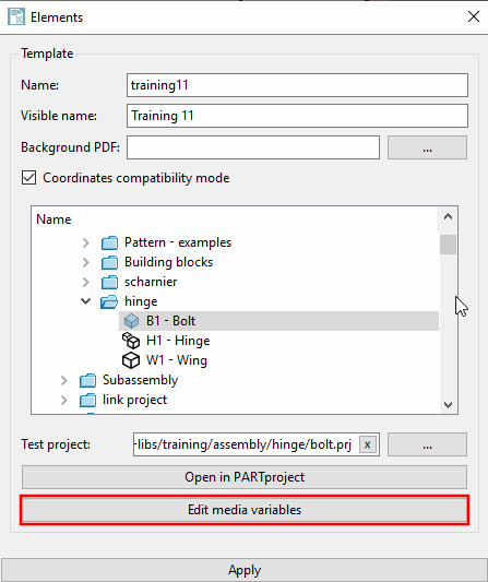 -> In the lower half of the dialog box the already existing Media Variables of the selected type are displayed.
