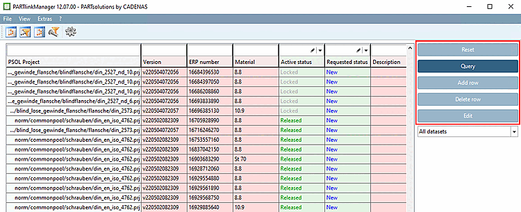 Click the Send selection to PARTlinkManager [Send selection to Link Manager] button. (This and the following button are only visible if PARTdataManager was opened from PARTlinkManager )
