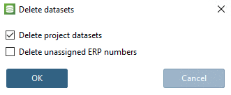 If only Delete project data records [Delete project datasets] is clicked and a fully completed data record is selected, the ERP number is retained and the other information is deleted. Data records that contain nothing but the ERP number cannot be deleted with this option alone.