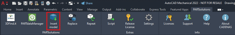 [11] When using AutoCAD, for example, Insert model is displayed by default. Whether 2D or 3D mode is used in the CAD depends on whether a 2D derivation has been created in PSOL or not. You can change the button display to Insert 2D by config.