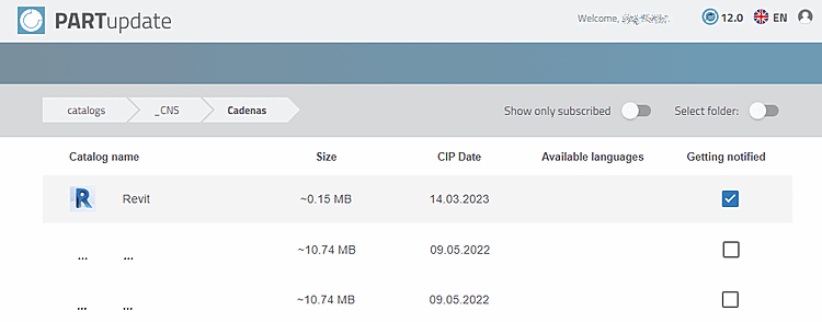 Catalogs and classifications can be downloaded not only on PARTadmin, but alternatively also on PARTupdate.