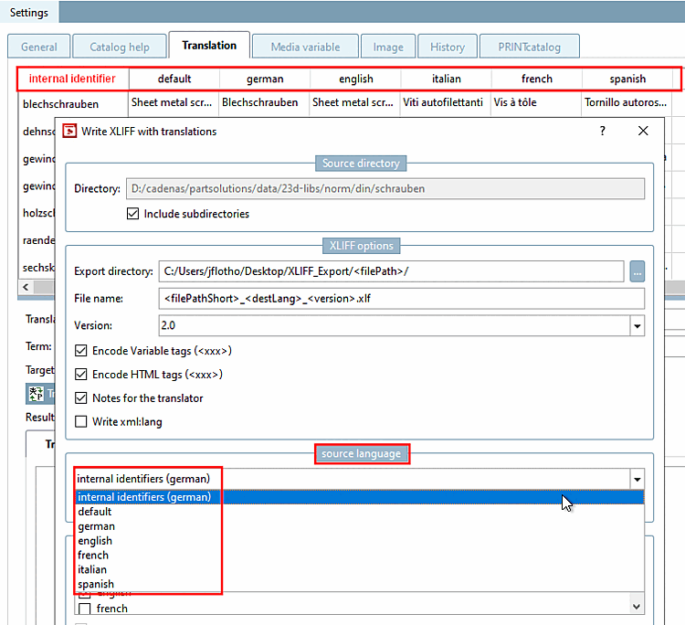 Force internal identifiers as source language: XLIFF makes it possible to export from any source language to any target language.