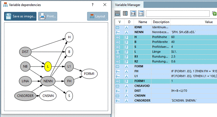 For example, in above figure you can see at a glance that the variables H, B, FH and S are used by the variable NENN.