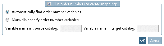• Normally all table variables are used. If this option is activated, only the variable of the order number is used. This will work without any failures, if no order numbers changed (were deleted, added) and only other variable values have been modified. Nevertheless, you should have a look on the mapping. The icons show whether there are rows, which should be checked. If the order number is built by an algorithm, problems could arise.