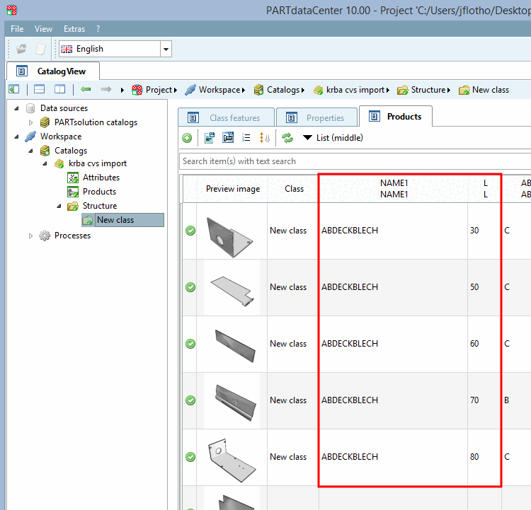 If no certain attributes are specified explicitly, the internal product ID is used for sorting by default. When clicking on a column header this attribute is used for sorting.