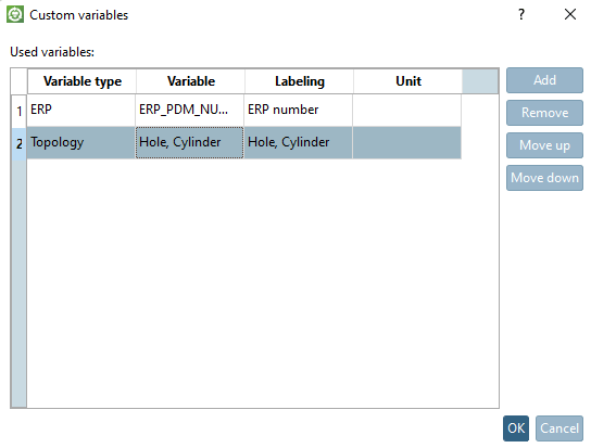 Here, you can specify variables which later will be displayed in the report at each part additionally.