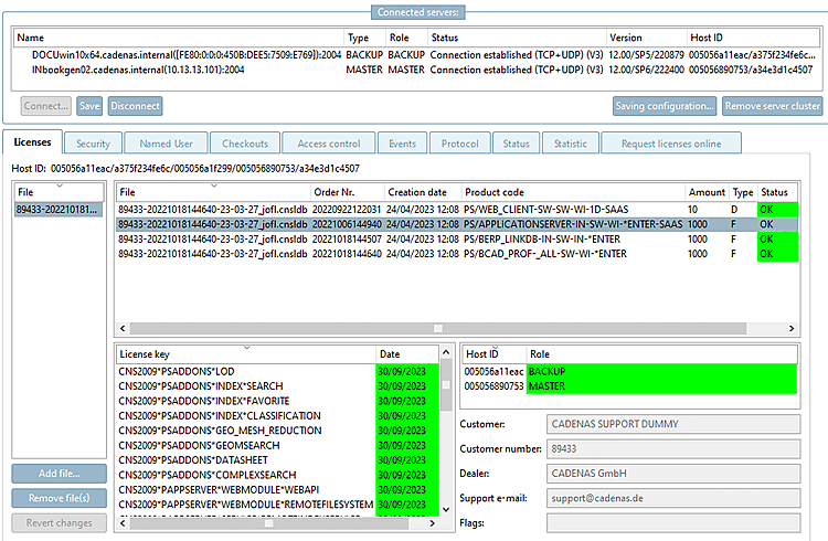 Licenseserver there are no entries in any existing sitesetup directory. Never copy license files manually! The license file must be imported via the user interface.