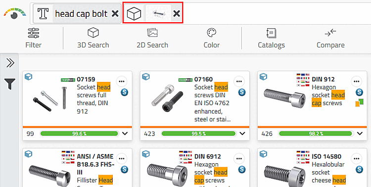 Call up the 3D search directly from the parts view via the button. Select either or .