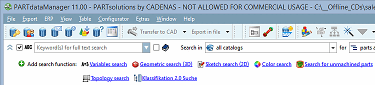 Full-text search and Variables search are always available by default. The other search methods require the license "CNS200x*PSADDONS*COMPLEXSEARCH.