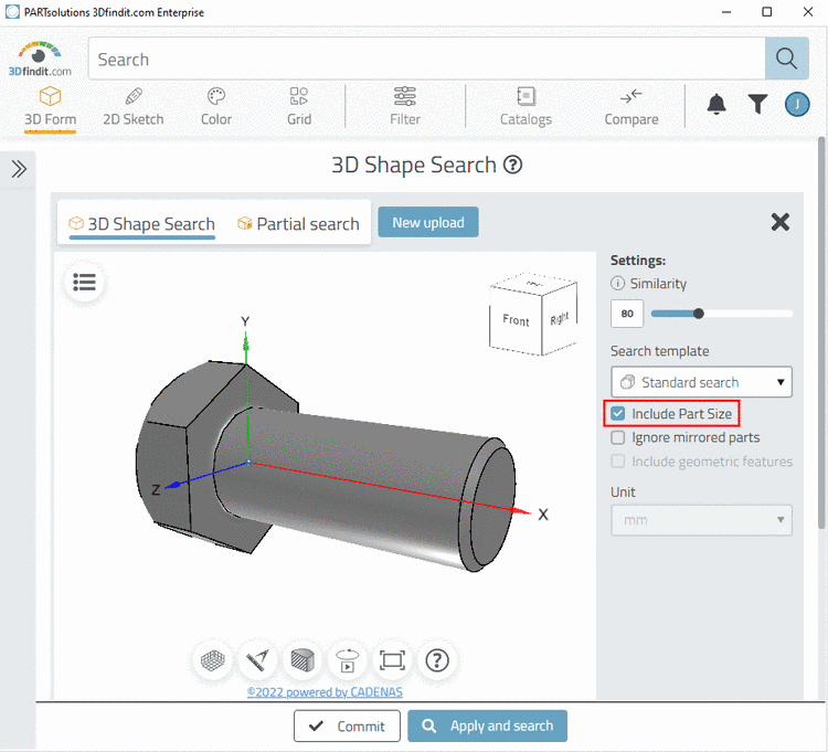 In PARTdesigner, instead of fixed dimensioning values, variables are created, which are filled by concrete values from the characteristic attribute table. This method has the advantage that a new sketch must not be made for each part value (characteristic).
