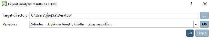 If HTML is selected, the Export analysis results as HTML dialog box opens.