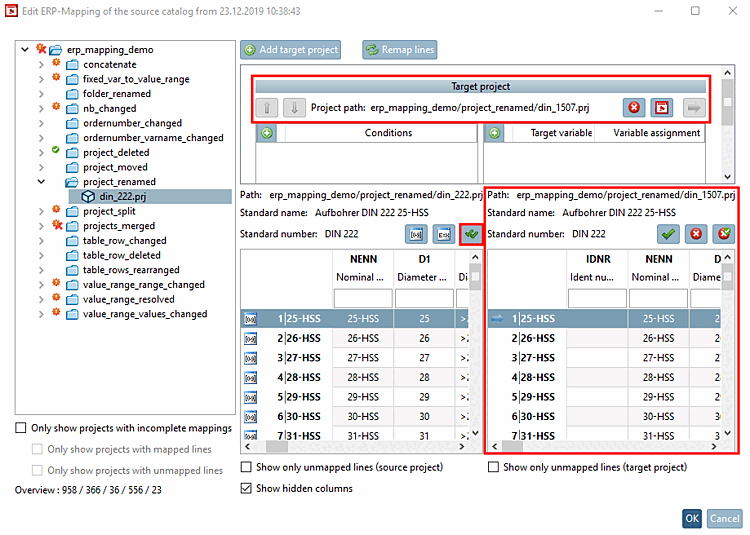 -> The selected project is added as a target project [Target project] and its table is displayed on the right.