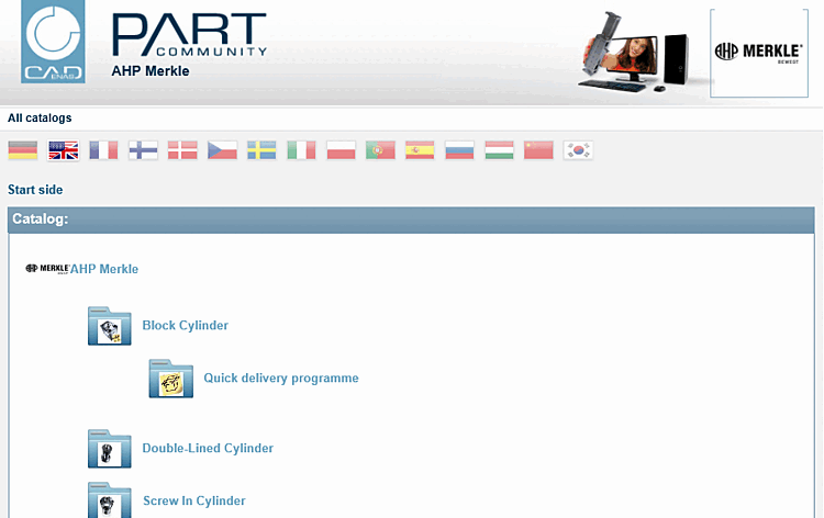The start page contains information on the supported output formats (Native CAD and Neutral CAD ). It also contains information on supported ERP/PDM interfaces.