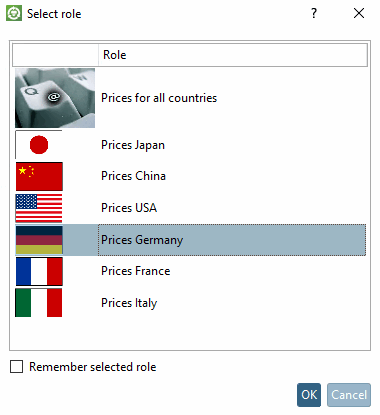 Example: Role "Prices Country GERMANY" - The figure is showing ERP number and price only for one row; that's why only here green is displayed.