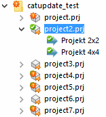 First, the projects "project.prj", "project2.prj" and "project4.prj" are edited in the Update Manager [Update manager].