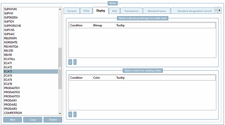 In the Roles dialog area, select the "ECAT3" role and the Translations tab page.