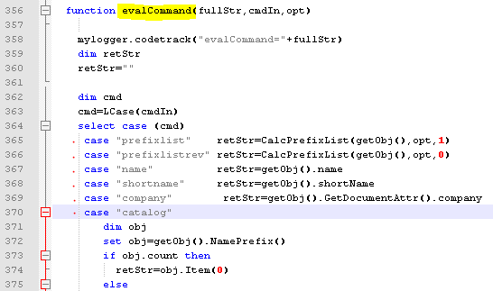 A bit earlier, we see the check whether a dynamic value has been passed. All parameters and functions in the select case construction are listed there: