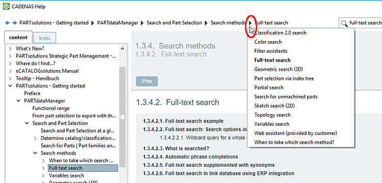 in the search path, the chapters below the selected point are listed.