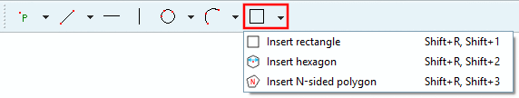 -> In the docking window Edit element, now the view changes to Insert hexagon. Here, you can adjust Width across flats, furthermore, also here, the center point of the hexagon via Center point X and Center point Y.