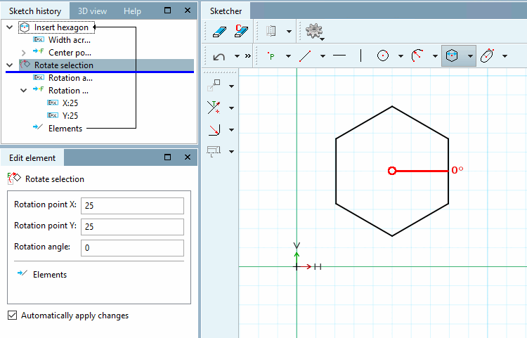 Select the Insert hexagon item in the sketch history [Sketch history].