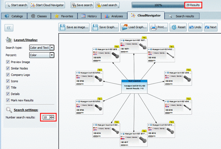 If the results in the Cloud Navigator are zoomed out in order to keep the overview, then to display the part information enlarged is helpful. Move the mouse cursor over the desired part.