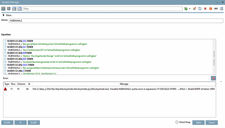 Enter your condition between the brackets () (e.g. "L1.EQ.10"). In this example, "D3" is the variable selected in the variable list.