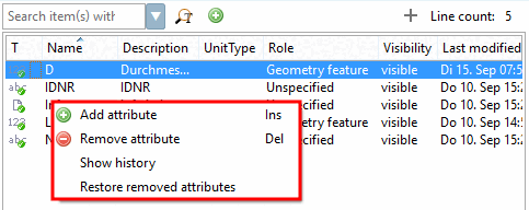The following list provides an overview of the individual functions of the attribute view [Attributes]. You may find links to detailed information there.