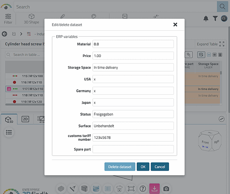 [40] All data records are managed in PARTlinkManager. If you select + unused ERP numbers in the list field, you will also see ERP numbers that have been used once but no longer have a link. Details on PARTlinkManager can be found under Section 4.25, “ PARTlinkManager Reference ” in ENTERPRISE 3Dfindit (Professional) - Administration.