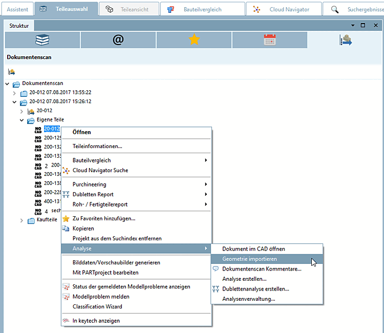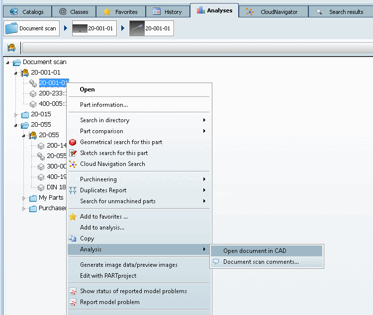 In the PARTdataManager under Part selection -> Structure, select the Document scan tab page.