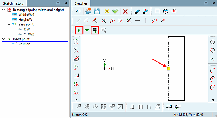 as it would otherwise be created twice. The base point is located in the other sketch as the pattern origin.Now you have following situation.