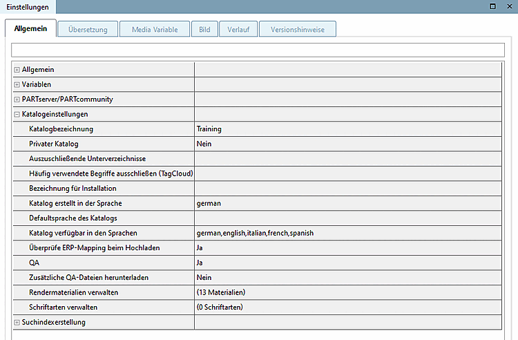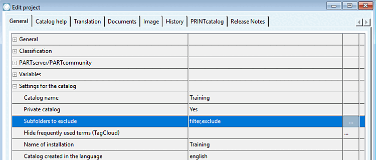 Call up the PARTproject call up the General tab page at catalog level.