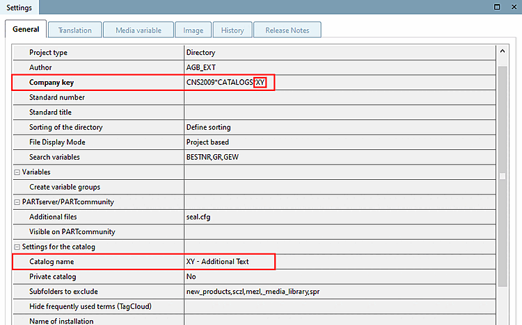 In some interfaces, the catalog name from the company key [Company key] is transferred by default. However, this is associated with restrictions, as, for example, no name extensions or changes in upper/lower case can be made.