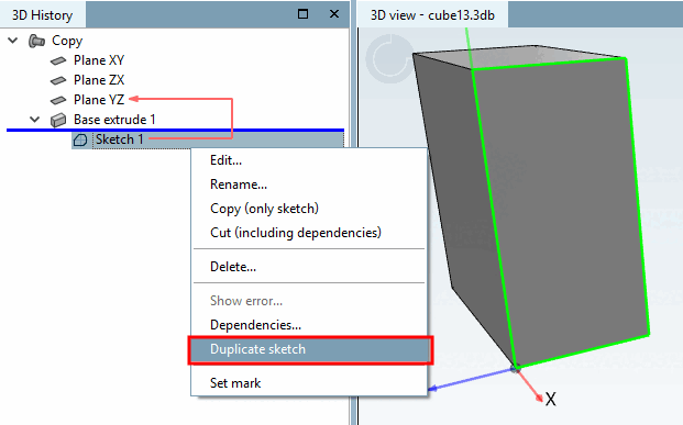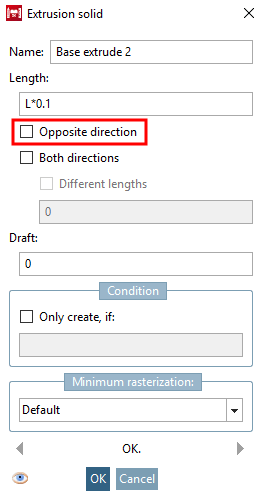 3. This time, extrude the duplicated sketch in the opposite direction. In the example, this time with the Opposite direction option deactivated. Previously, the option was activated.