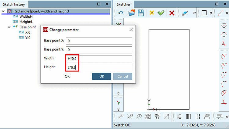 2. Modify the values in the Change parameter dialog [Change parameter].