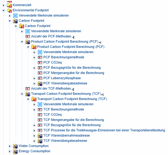 The corresponding data is modeled in our classification system as part of the classes CNSELEK|5|12|1|1 (Product Carbon Footprint Calculation; PCF) and CNSELEK|5|12|1|2 (Transport Footprint Calculation; TCF).