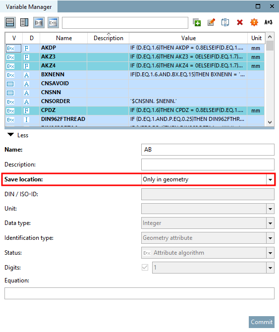 If variables were initially only created with the Only in geometry option (in order to use them "quickly" for creating a 3D model), it is later necessary to save them in the tab/tac file in order to link them to the table and "fill" them dynamically.