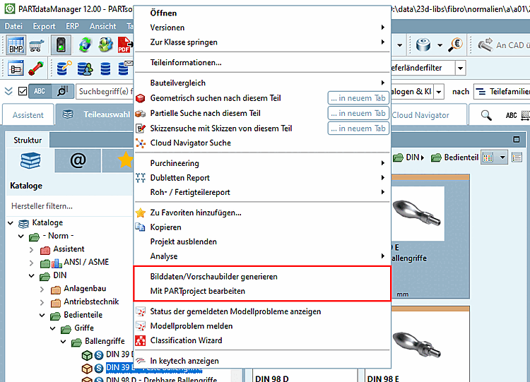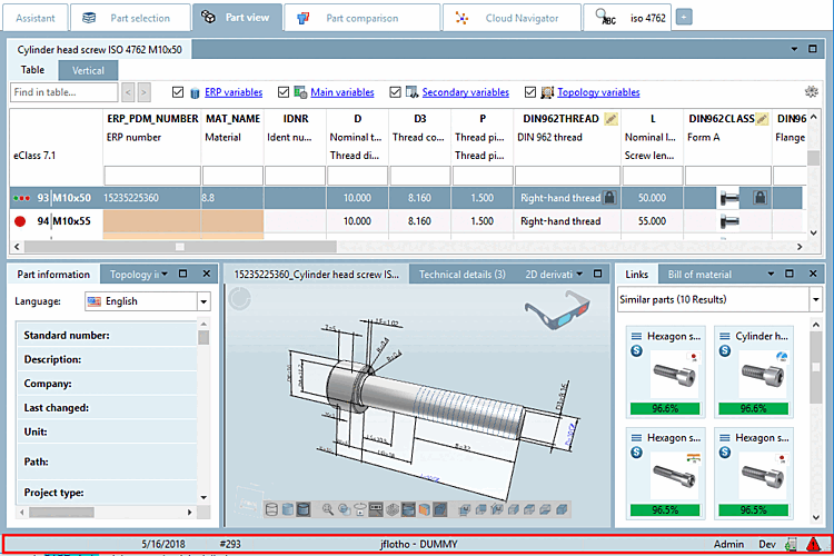 If "Dev" is displayed, the PARTdataManager corresponding context menus for catalog development are available.