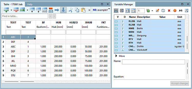 Unit: corresponds to the unit of the variables [Unit of the variable] under Header on the previous page