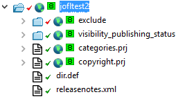 In order to prevent the display of projects (directories) in output media, they do not have to be removed, but it is sufficient to use the context menu command Remove publishing marker [Remove publication mark]. With Set publishing marker [Set publication mark], projects (directories) can in principle be designated for display in output media, whereby other factors also play a role.