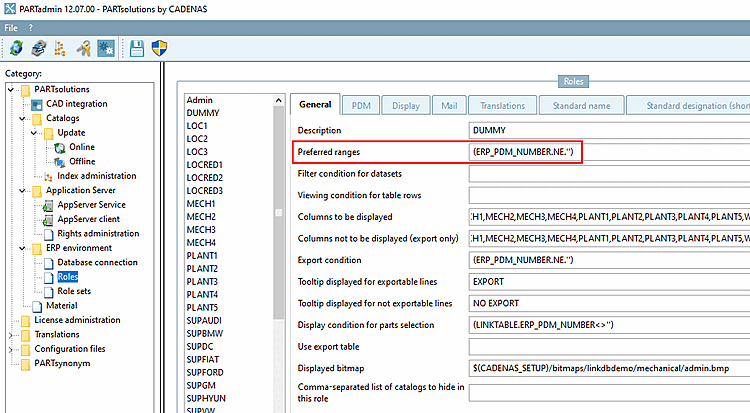 Setting via user interface under PARTadmin -> Category Roles -> General tab -> Preferred series [Preferred ranges]