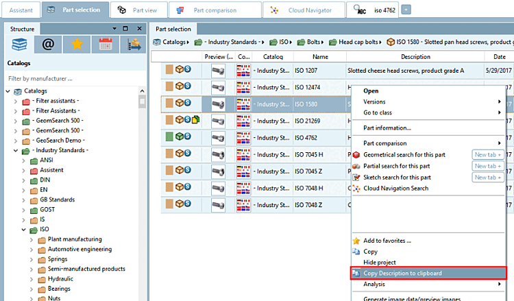 The command in the context menu is then, for example, Copy catalog to clipboard or Copy description to clipboard.
