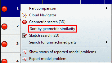 Especially in own part catalogs, where heterogeneous parts with quite different look are collected in a classification project, sorting of the table by geometrical similarity is helpful.