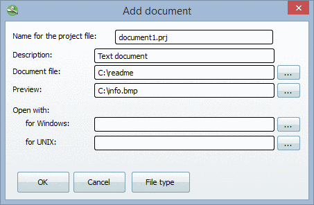 Document projects can be used to append supplementing information (e.g. dimensioning sheets) to a project. Common file formats for this purpose are *.html, *.pdf and *.doc.