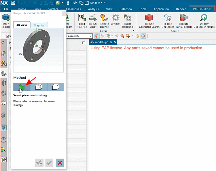 -> The NX placement dialog should now show exactly the settings you made when recording the macro.